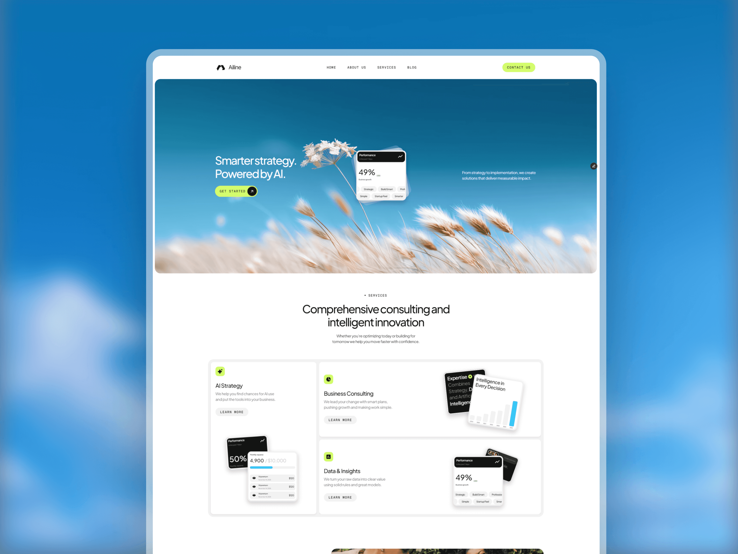 Ailine is a Framer template specifically designed for AI-driven agencies, technology consultants, and strategic firms looking to establish a sophisticated, innovative, and authoritative online presence.