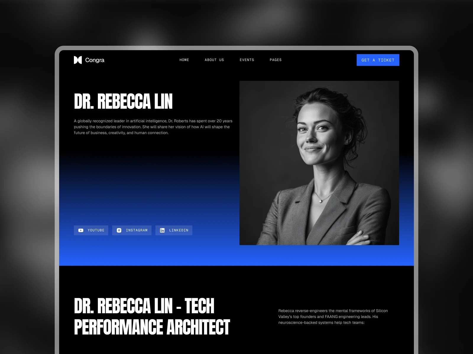 Congra is a vibrant template for startups and event platforms, perfect for showcasing speakers, schedules, and highlights while keeping your audience engaged.